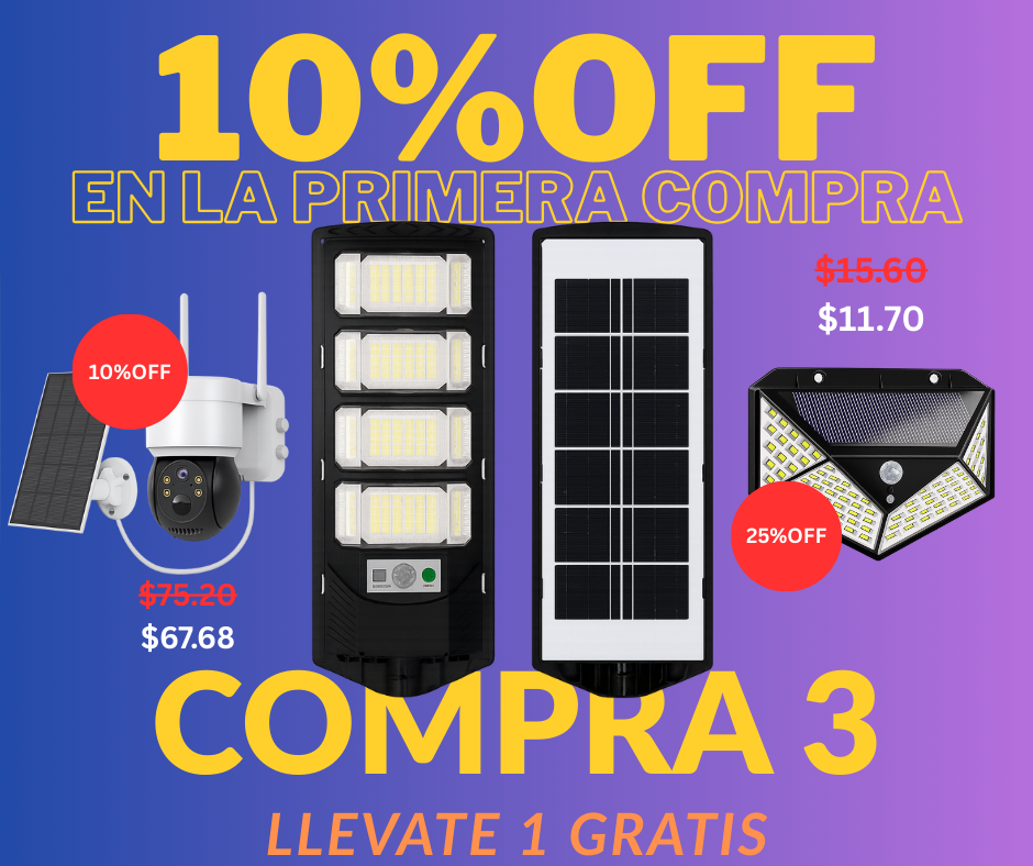 Foco Solar LED - Sensor de movimiento + fijos 300W- 4,000 lumens